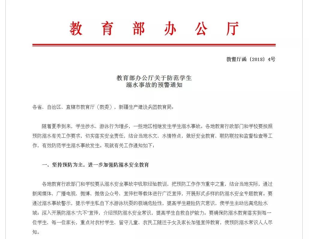 《关于防范学生溺水事故的预警通知》